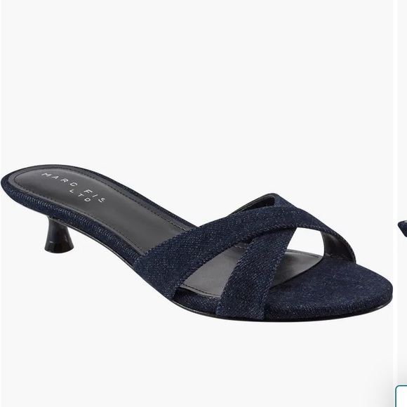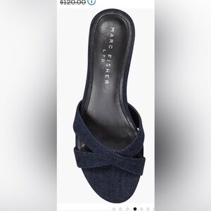 Marc Fisher LTD Women's denim dark blue Tracey Kitten Heel slide Sandal Size 11M