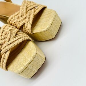 A chunky wrapped platform and tall block heel elevate this texture-rich quarter-strap sandal that's a fashion-forward must-have for the season.