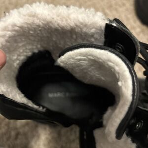 Marc Fisher Lace-Up Heeled Lansley Combat 8.5 Work Boot Shearling Lining Black