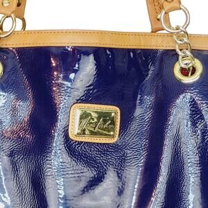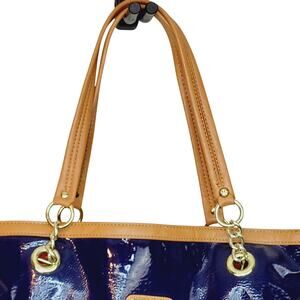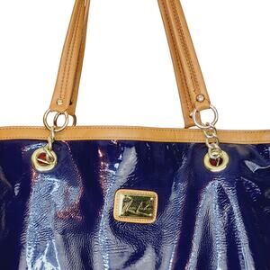 Marc Fisher Large Blue Tote Faux Leather Handles Computer, Beach, Shopping EUC