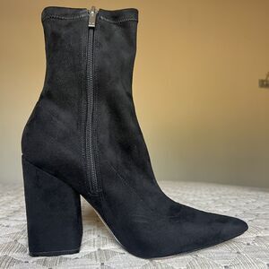 Marc Fisher Larry Black Faux Suede Pointed Toe Sock Ankle Boot Bootie Women 8.5