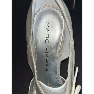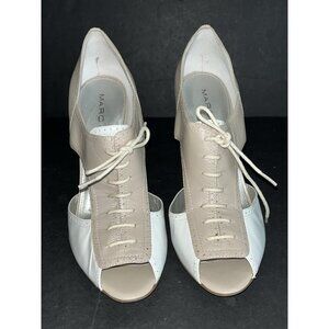 Marc Fisher Leather Pep Toe 4" Heels Lace Up Shoes Open Sides Tan White Sz 7.5