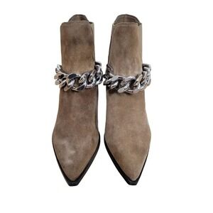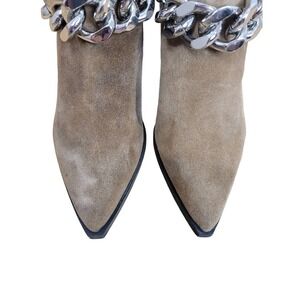 Marc Fisher Ltd Henly Bootie in Cognac Tan Suede Silver Chain Pointed Toe AS IS