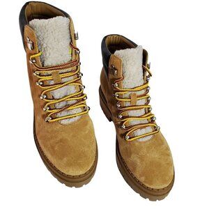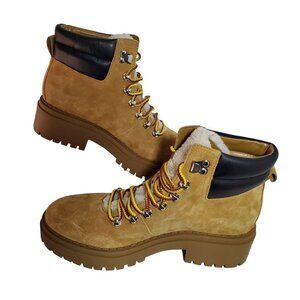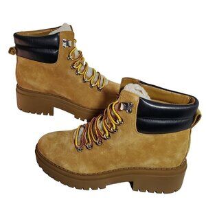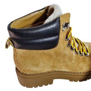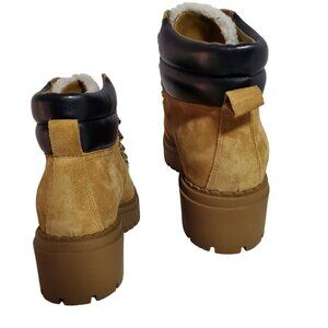 Marc Fisher Lug-Sole Bootie Suede Leather Tan Faux Fur LaceUp Shoe Women 8.5 NWT