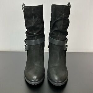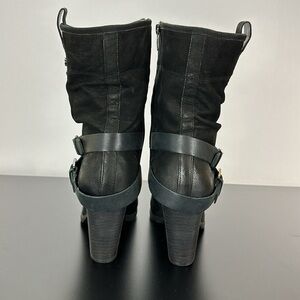 Marc Fisher MFFamous Black Nubuck Leather Mid Calf Boots Booties 10M
