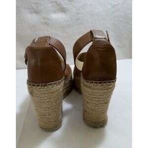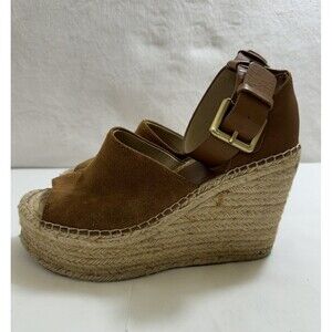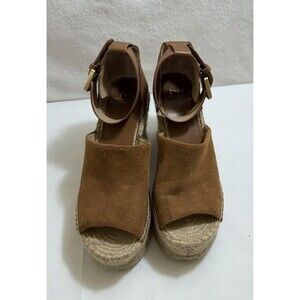 Elevate your retro-inspired look with these Marc Fisher MLAdalyn leather and suede espadrille wedge platform shoes in size 7.5M. The tan color of the shoe exterior and lining material made of leather gives it a chic and sophisticated appeal suitable for any occasion. The shoe features a comfortable and durable leather outsole that provides excellent traction and support, making it an ideal choice for women who love to stay stylish while on the go.