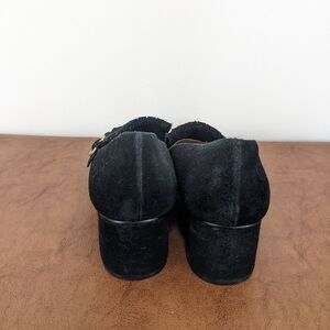 Marc Fisher Mabel Fringe Black Suede Leather Gold Buckle Block Heel Loafer Shoes
