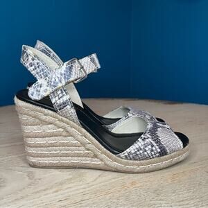 Marc Fisher Maiseey Espadrille Wedge Sandals White Snake Size 8.5
