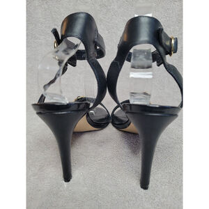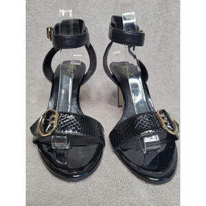 Marc Fisher Malika Black Leather Ankle Strap Heel Open Toe Gold Buckle Women 8.5