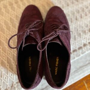 Marc Fisher Maroon/Purple Suede Wingtip Lace up Loafers. Women’s Size 7 1/2