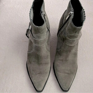 Marc Fisher Mlhalie Ankle Boot-Gray-Suede-Womens 8-Harness-Moto-Punk-Grunge-EUC