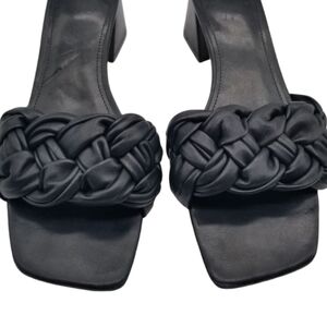 Marc Fisher Nahea Black Braided Leather Block Heel Mules Size 10 - Excellent Condition**