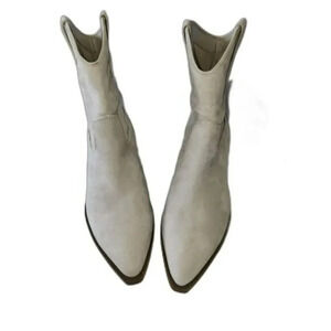Exude dapper style in the Marc Fisher Nonie cowboy bootie. A chic pointed-toe design adds edgy appeal to this Western bootie fashioned with tonal stitching patterns and stacked block heels for elevated elegance. It is new, without tags or original box - has never been worn.