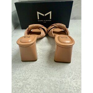 Marc Fisher Nude Chunky Heel Mule Sandals Womens Size 6.5 Leather Square Toe