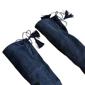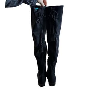 Marc Fisher Olympia Over The Knee Boots Tassel Black 8M Faux Suede