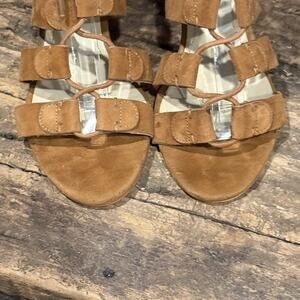 Stylish Marc Fisher suede lace-up gladiator sandals in a rich cognac tan.