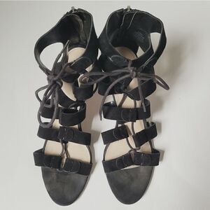 Marc Fisher Paradox Suede Block Heel Lace Up Sandals in Black Size 9