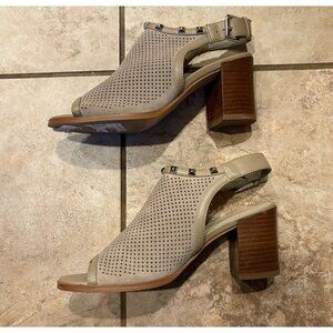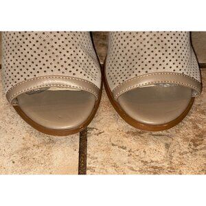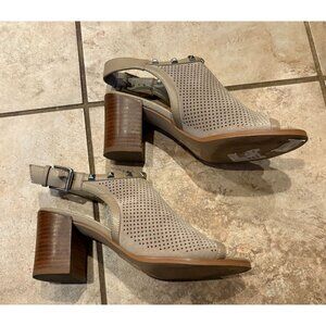 Marc Fisher Parso Suede Studded Wood Block Heel Slingback Taupe Sandals 6.5M