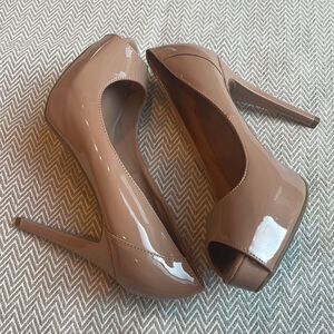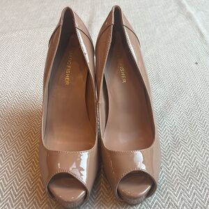 Marc Fisher Patent Nude Harper Peep Toe Pumps 8.5