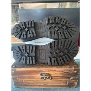 These NWOB Marc Fisher Patrick Chelsea Lugsole Booties feature a statement-making lugsole, contrast stitching, and double gore with a pull tab at the ankle for easy styling, There is a tiny dent on the inside back of the left boot and a tiny flaw on the top of the left boot (see last two pics), otherwise, these are in great condition.