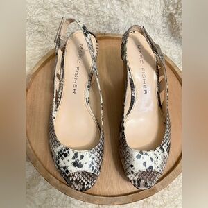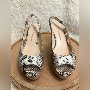 Marc Fisher Peep Toe Snakeskin Cork Wedges Platform Heels Size 6