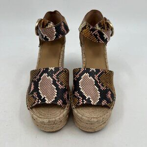 Marc Fisher Pink Yellow Snakeskin Print Wedges | Size 9.5