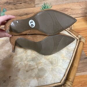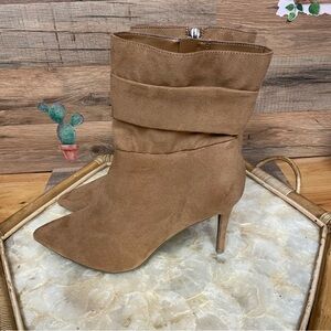 Marc Fisher Pointed Ankle Bootie Sz 9.5 Tan Fabric Dressy Slouchy Stiletto Boots