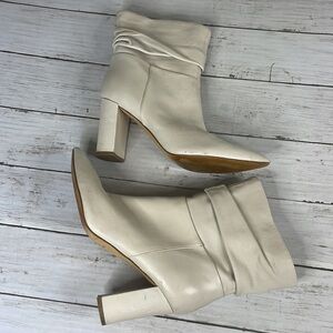 Marc Fisher Pointed Toe Slouchy Cream Ankle Boots