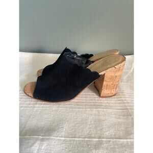 Marc Fisher Pomme Black Leather Suede Mule Block Heel With open Toe. Sz 8.