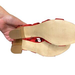 Marc Fisher Red Leather "Paradox" Lace-Up Caged Heeled Sandals, 3" Heel, Size 8M