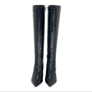 Marc Fisher Retie Black Croco Embossed Leather Womens OTK Boots Size 5M