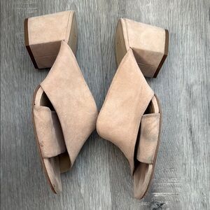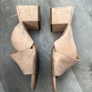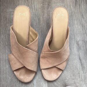 Marc Fisher Rinna Nude Mules Sandals Shoes with Chunky Block Heel