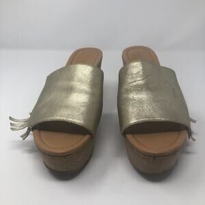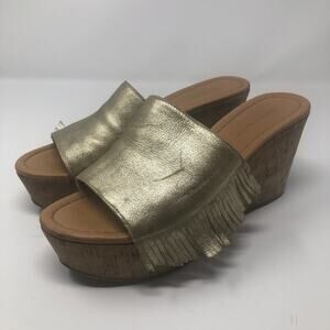 Marc Fisher Shawni Gold Fringe Wedge Sandals Size 8.5