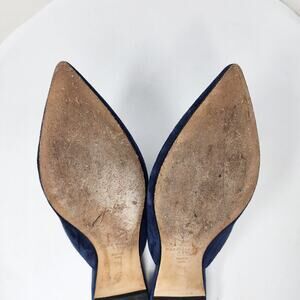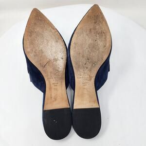 Marc Fisher Shiloh Flat Mule Women 7M Navy Blue Suede Pointed Toe Leather Sole