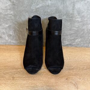 Marc Fisher Shimmee Black Suede Leather Peep Toe High Heels Women's Size 9