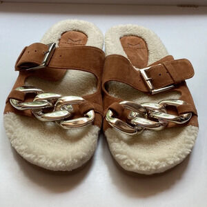 Marc Fisher Shoes Marc Fisher Fresno Natural Tan Shearling Sherpa Slide Sandals