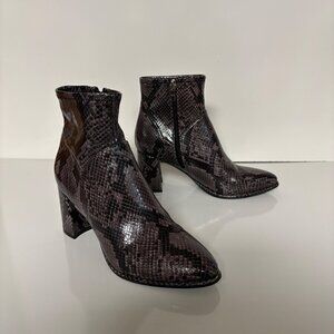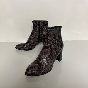 Marc Fisher Snake Print Ankle Boots Womens Size 8M Block Heel Zipper Closure