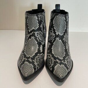 Marc Fisher Snakeskin Booties Women's 6.5 Black Vegan Leather Pointed Toe NWB