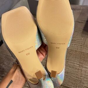 Marc Fisher Square Toe Snakeskin Heels.