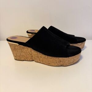 Marc Fisher Suede Leather Chunky Cork Platform Wedge Heel Sandals Black US 8.5