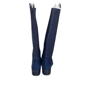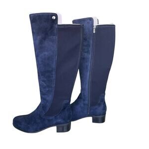 Marc Fisher Suede and Stretch Side Zip Knee-High Boots Navy Size 7.5 Wide