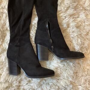 Marc Fisher $249 Over the Knee Boot Black Suede US 10 Heeled Pointy Toe