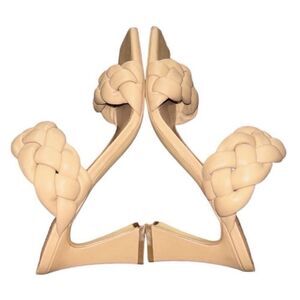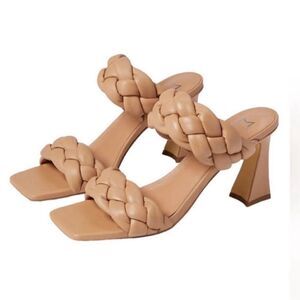 Marc Fisher Tan Slip on Leather Upper Braided Sandals, Minor storage scratches. NWOB,NWOT