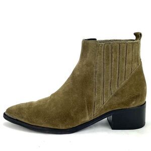 Stylish tan suede ankle boots. Features a sleek design with a low heel. Perfect for versatile wear.