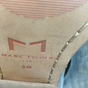 Marc Fisher Vashi Ankle Strap Sandals with Chunky Stacked Heel, size 8. In excellent used condition. Some wear on bottom of sole but signs of wear are minimal.