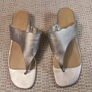 Marc Fisher 'Veva' women's silver metallic scallop edge thong sandals sz 10 M