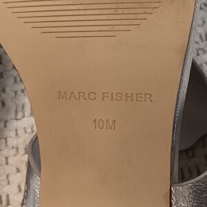 Marc Fisher 'Veva' women's silver metallic scallop edge thong block heel sandals sz 10 Medium. Pre-owned.