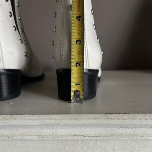 Marc Fisher White Yente Chelsea Boot Western, Stud Accents, Scalloped Stitching
