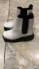 Sleek white boots with contrasting black panels. Modern and versatile design.