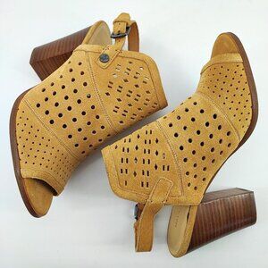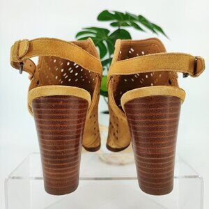 Marc Fisher Woman’s Camel Perforated Suede Heel Sandal Size 9